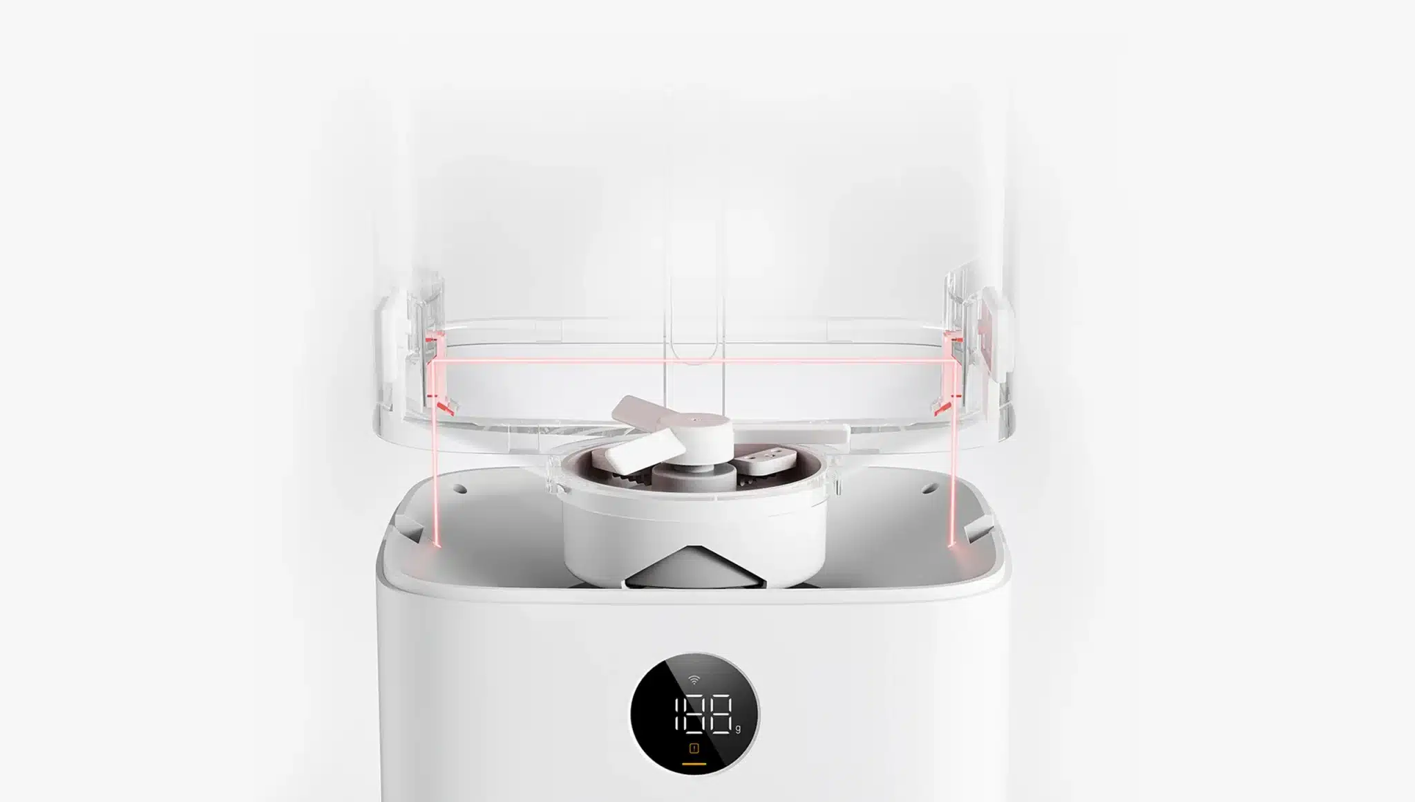 مجهز به حسگرهایی برای تشخیص دقیق غذای باقیمانده در کاسه در زمان واقعی با حاشیه خطای کمتر از ۱ گرم.