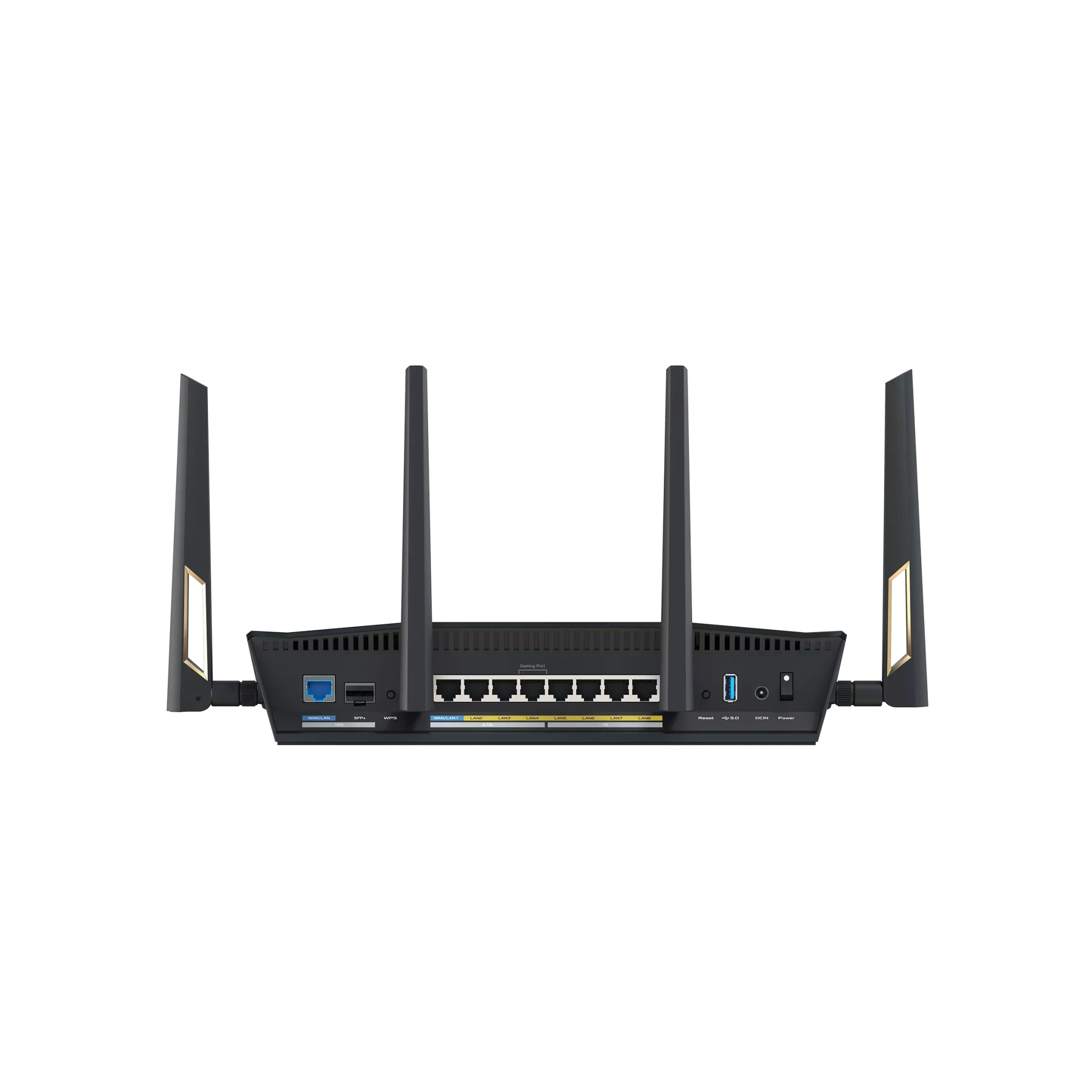 RT-BE88U به سرعت بیسیم فوقالعاده سریع تا 7200 مگابیت بر ثانیه دست مییابد و پخش بیوقفه، بازی و کارهای سنگین را تضمین میکند. چه در حال تماشای برنامههای مورد علاقه خود باشید و چه در حال همکاری در یک جلسه مجازی، این روتر این امکان را برای شما فراهم میکند.