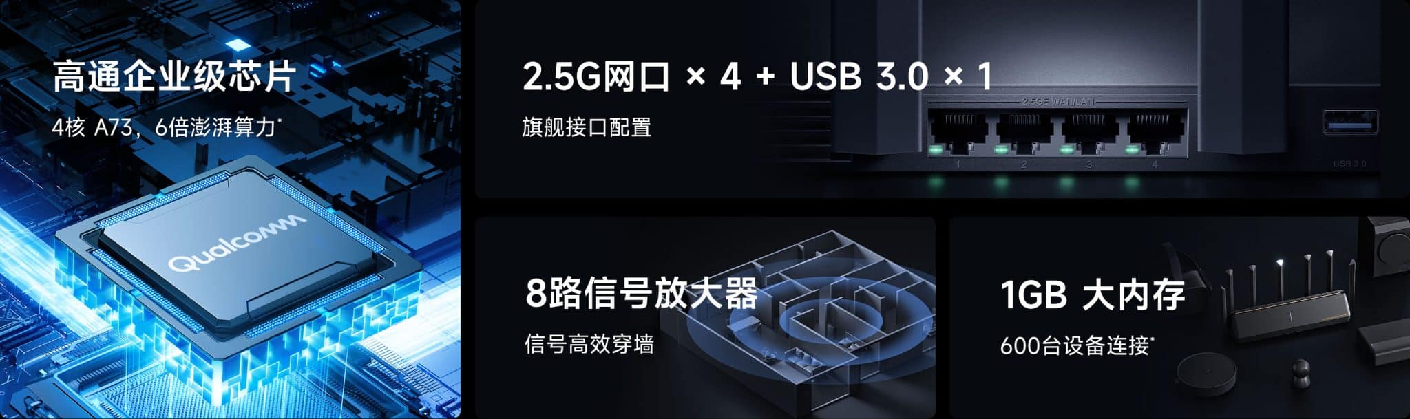 - 4×10/100/1000/2500M adaptive WAN/LAN port 1×USB 3.0 interface