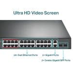 ۲۴ پورت PoE+ با سرعت ۱۰/۱۰۰ مگابیت بر ثانیه RJ45، پورت uplink گیگابیت RJ45 و ۲ اسلات ترکیبی گیگابیت SFP TL-SL1226P