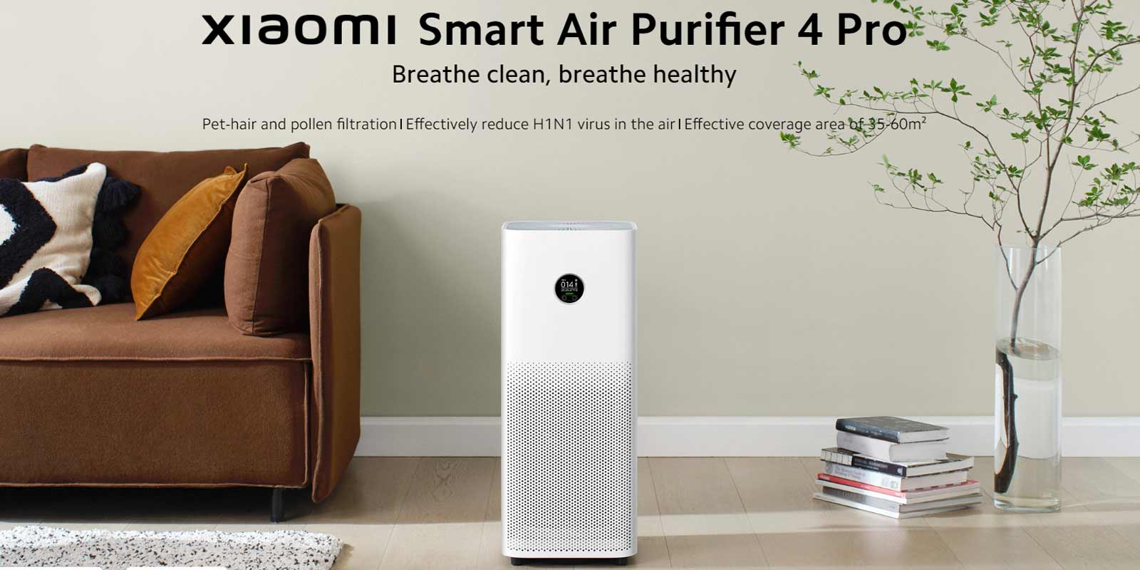 Xiaomi Smart Air Purifier 4 Pro با فیلتر موی حیوانات خانگی و گرده گل، کاهش موثر ویروس H1N1 در هوا، پوشش موثر منطقه 35-60 متر مربع دستگاهی موثر برای تصفیه هوای محل زندگی و کار شماست.